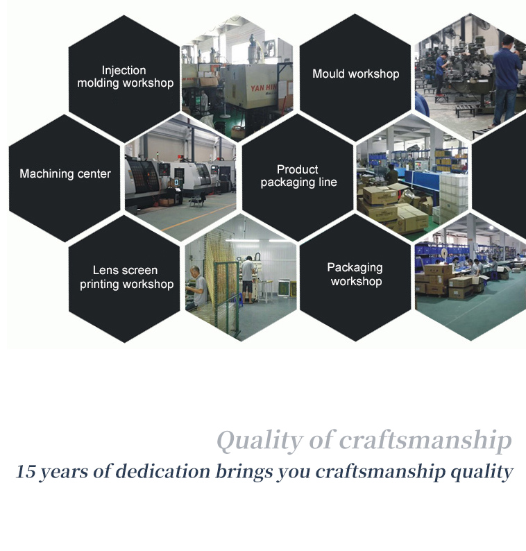 The company has mold workshop, injection molding workshop, oil spraying workshop, silk screen workshop, CNC machine workshop, acrylic lens and glass panel production workshop, and has a team of high-quality talents in product research and development and production management. In today's rapidly developing science and technology, we combine customer needs, continue to innovate, and provide customers with fast, high-quality, affordable and satisfactory products as our purpose.